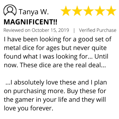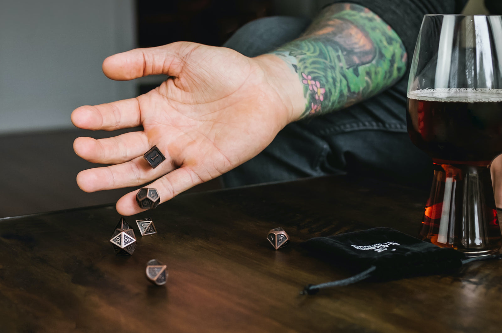 It all started when Josh started getting interested in metal dice. We were shocked by the prices out there, so, having an entrepreneurial bent, we decided to start our own dice company.