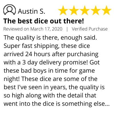 We bring you high quality dice at a fraction of the price of other brands. We also back our dice with a lifetime warranty, an industry-first lost dice replacement program, and fast free shipping on orders over $25.
