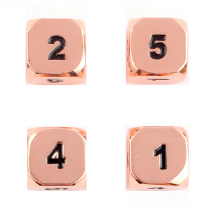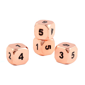 • What’s in the box: 4-piece metal D6 dice set and a velvet dice pouch